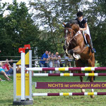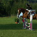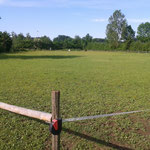 Der Springplatz (ca. 50m x 100m) mit seiner gepflegten Rasenfläche wird, wenn keine Hindernisse aufgestellt sind, auch gerne als “Reitwiese” oder Koppel genutzt. Pferd und Reiter können hier die idyllische Lage zwischen Hecken und Feldern genießen, durch die die Paddocks und der Außenplatz von der Straße abgeschirmt werden.